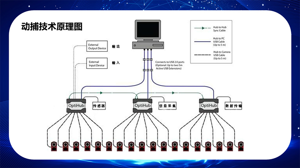 光学动捕通过布置在空间中的多个高速红外摄像机,追踪目标物体上粘贴的标记点,利用立体视觉原理计算标记点的三维坐标,从而重建运动轨迹。亚毫米级高精度,适用于科研、影视动画、机器人定位等领域。