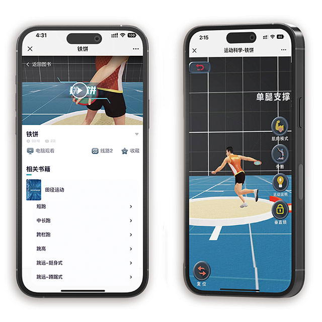 数字教材《大学体育与健康》凭借与“3D可视化数字动作标准库”中三维立体动作模型数字资源的完美融合,体育项目的动作得以立体化呈现,为读者开启了全新的学习体验,在体育教材领域迈出了极具创新性的一步,为推动高校体育教育的发展注入了新的活力。
