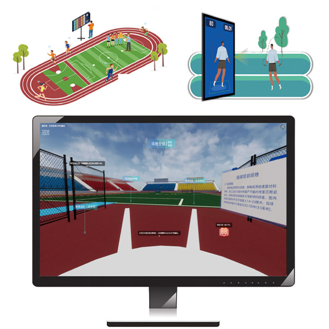 “3D可视化场地数字资源库”是实验室运用AI智能数字引擎、3D可视化虚拟仿真技术1:1真实还原体育教学运动场地。